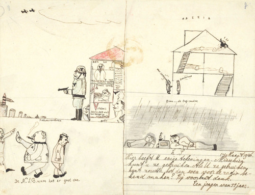 Tekening kind van 11 jaar, tekenopdracht van school in Middelburg, 1946, coll. NIOD, beeldnr. 184578