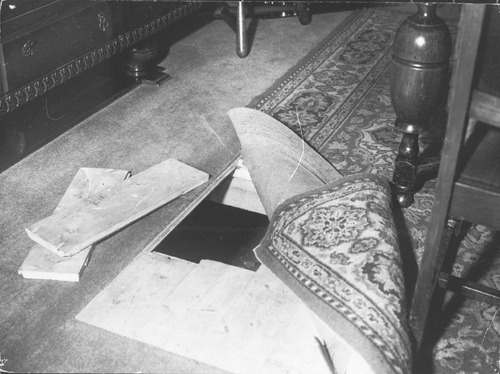 Luik in een vloer 1945, fotograaf onbekend, coll. NIOD, beeldnr. 85713